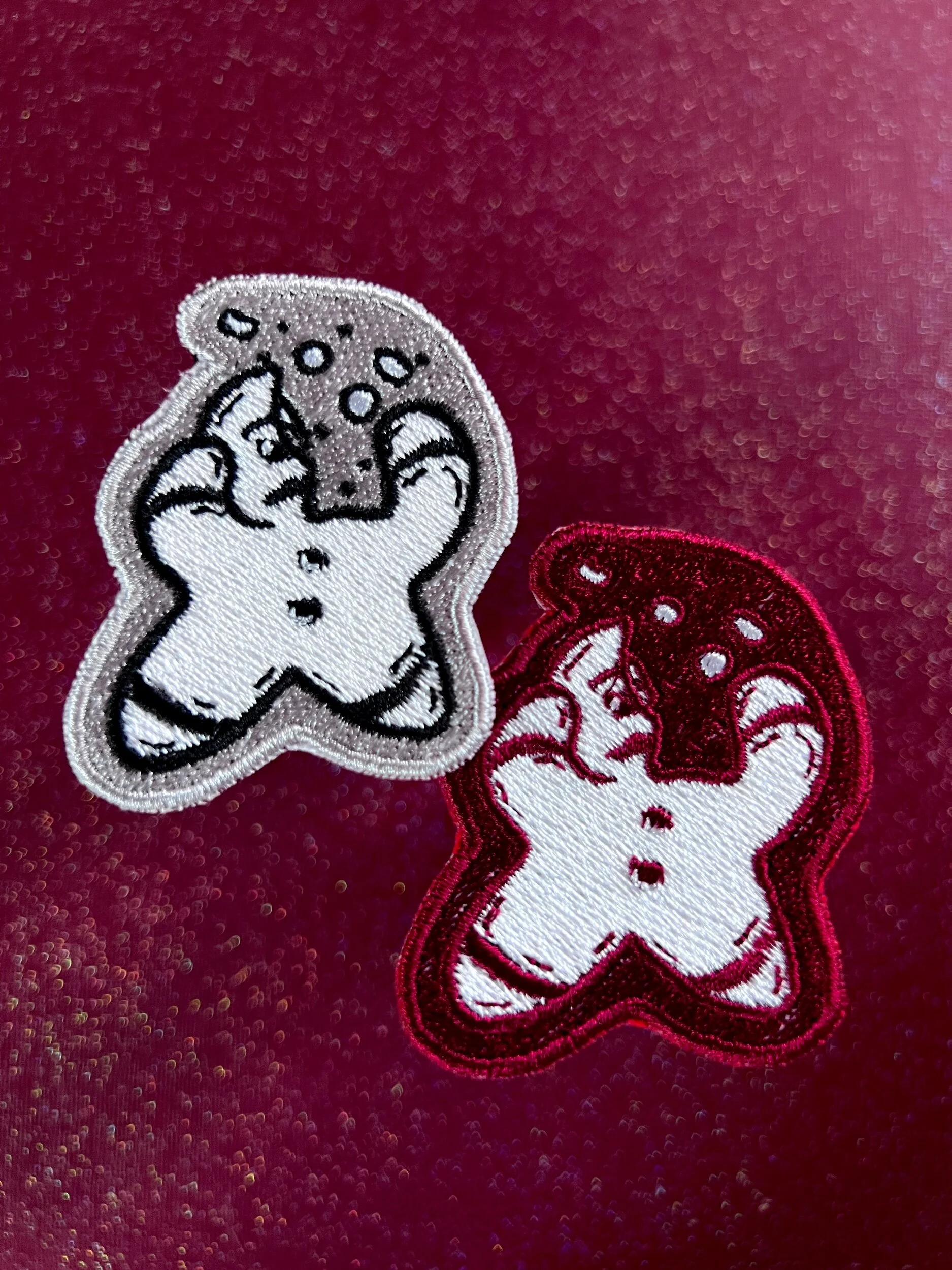 Mushroom Trio Embroidered Patch Iron On or Sticker Backed